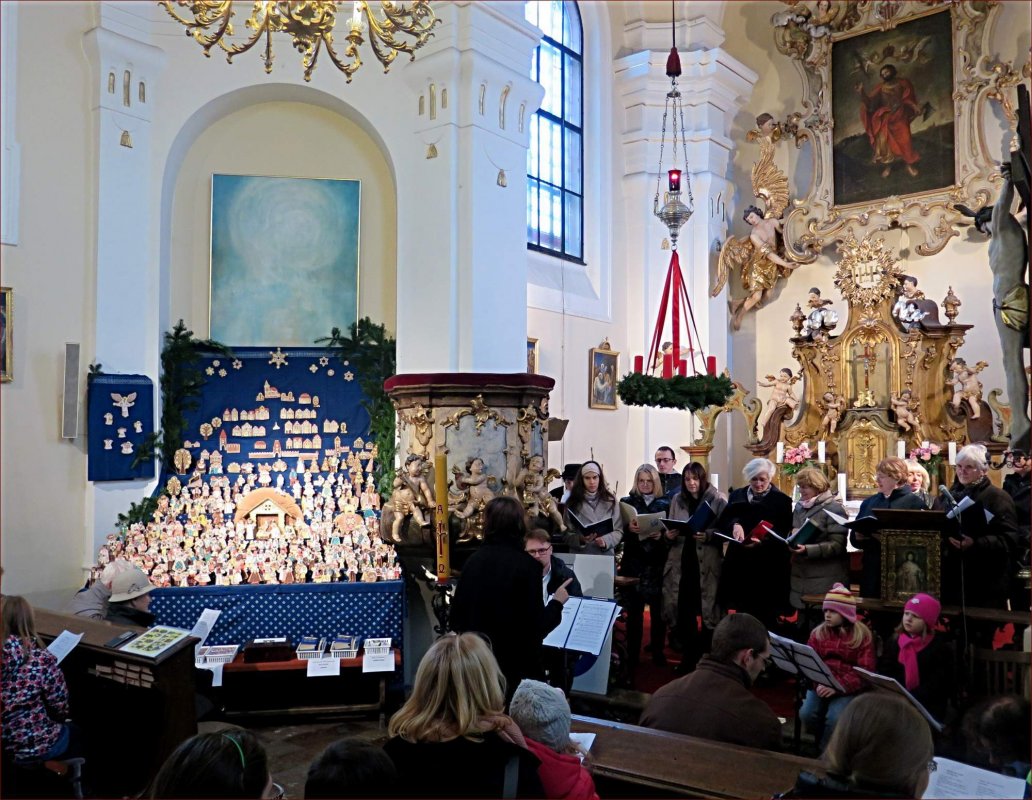 V sobotu 21.12.2019 v 11:00 hod. zahájily výstavu perníkového betlému děti ze svatomatějské farnosti zpíváním koled, po nich zazpívali dospělí ze souboru DLOUHO MLADÍ. Fotografie pořídili Jarmila a Jan Novákovi.